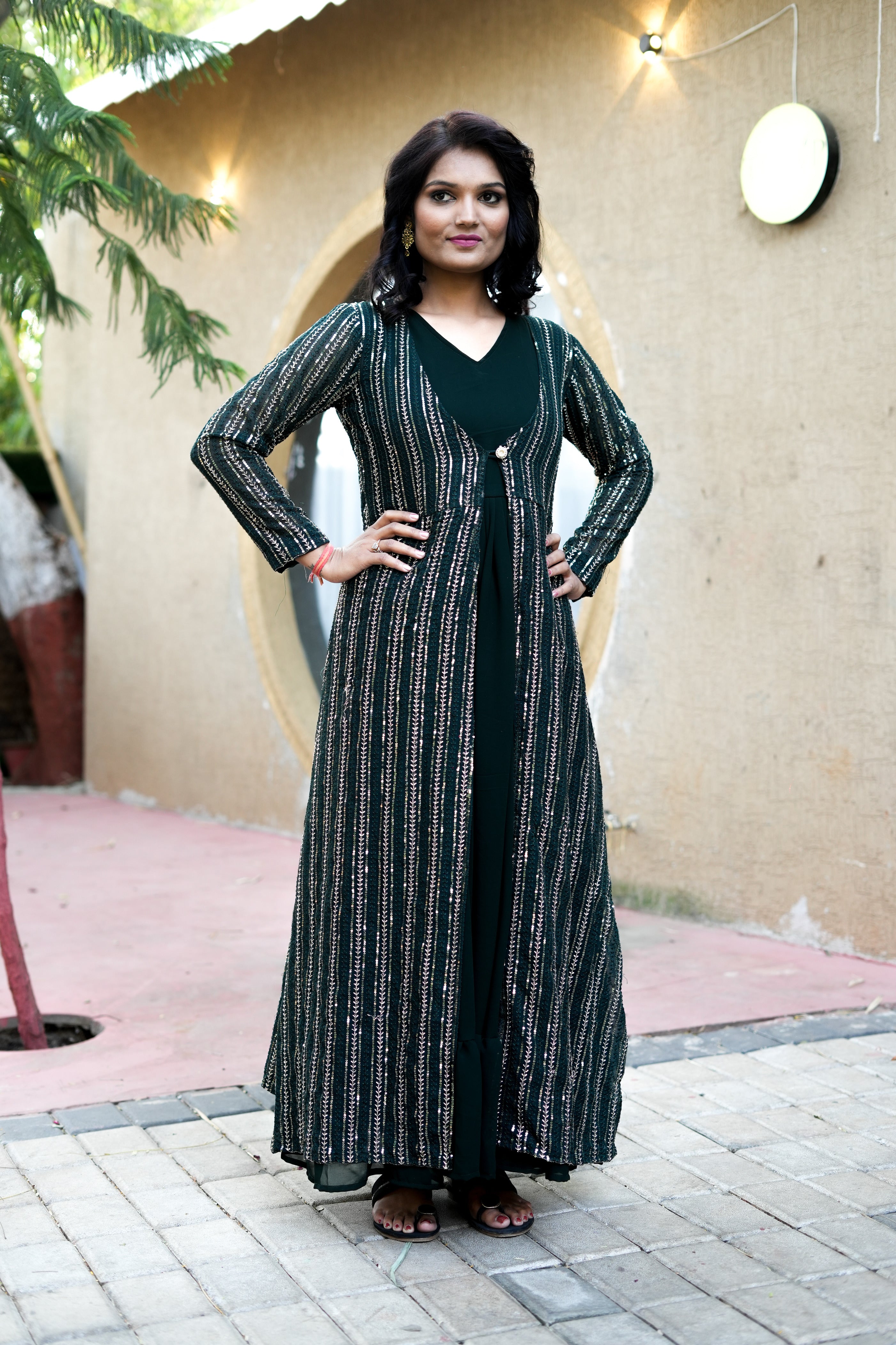 Elevate your style with the Paridha Green Shrug Georgette Dress, a blend of modern design and timeless elegance. This outfit features a flowing georgette dress paired with a chic shrug, adding versatility to your wardrobe. The soothing green shade and delicate craftsmanship make it a perfect choice for festive gatherings, cocktail evenings, or casual celebrations. Designed for comfort and style, its lightweight fabric and flattering fit ensure effortless grace. Reflecting Paridha’s commitment to quality, this piece combines sophistication with ease.
